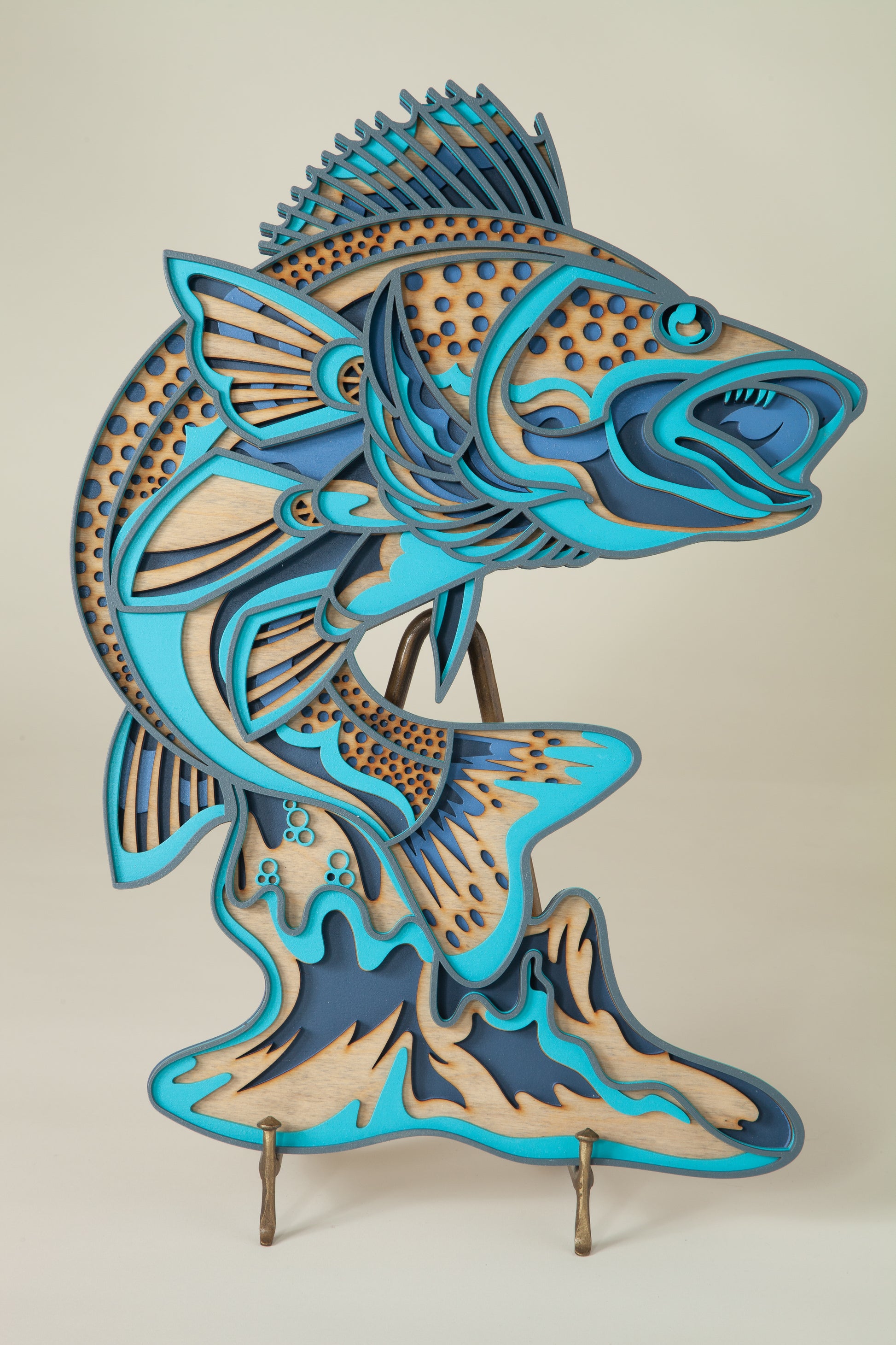 This layered design features a saltwater trout in action — a must-have for anglers who love the thrill of coastal fishing.